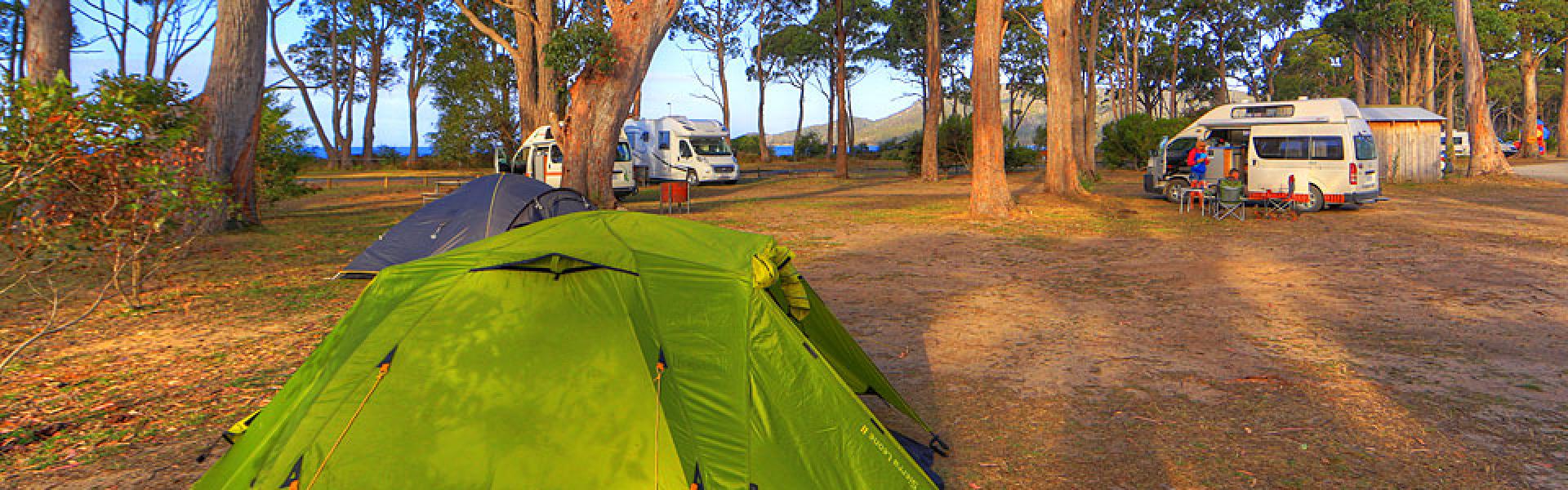 The park has both powered and unpowered sites. The sites overlook the bay and river area and have shared amenities and camp kitchen with access to filtered drinking water